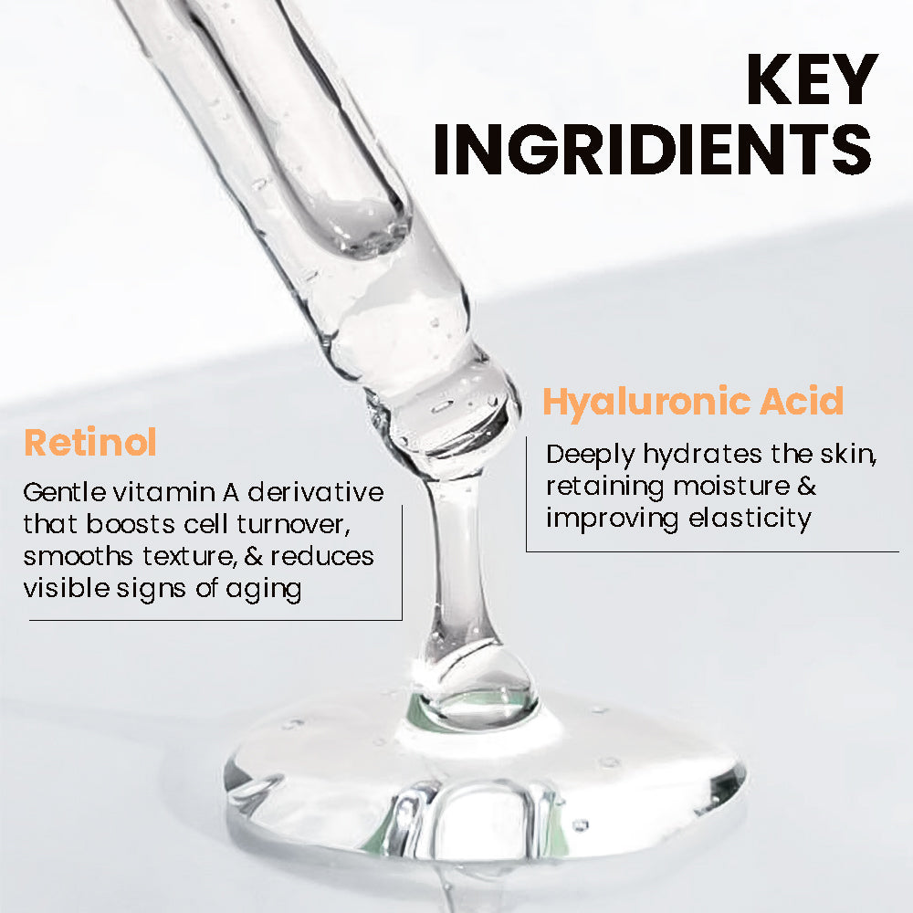 Retinol (0.1%) – A gentle vitamin A derivative that boosts cell turnover, smooths texture, and reduces visible signs of aging.